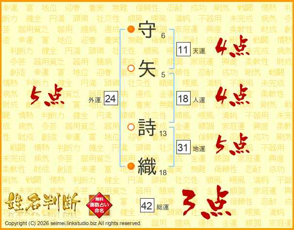 守矢詩織さんの天運は11画の4点!