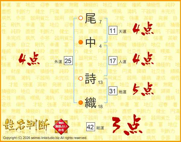 尾中詩織さんの天運は11画の4点!