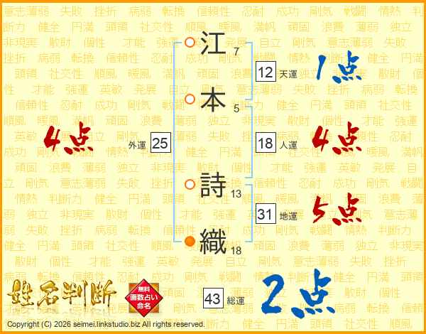 江本詩織さんの総運は43画の2点!