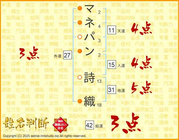 マ(2画)ネ(4画)パ(3画)ン(2画) 詩(13画)織(18画)