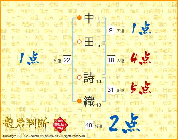 中田詩織さんの人運は18画の4点!