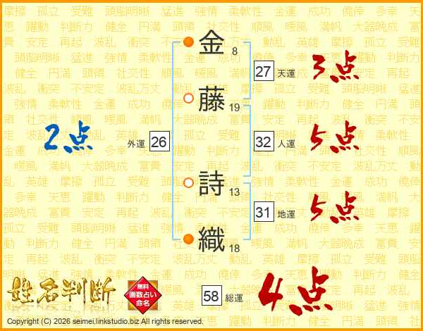 金藤詩織さんの総運は58画の4点!