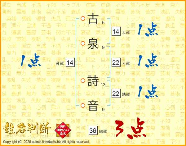 古泉詩音さんの天運は14画の1点!