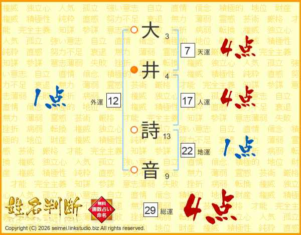 大井詩音さんの人運は17画の4点!