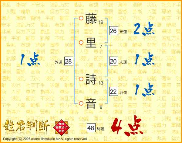 藤里詩音さんの総運は48画の4点!