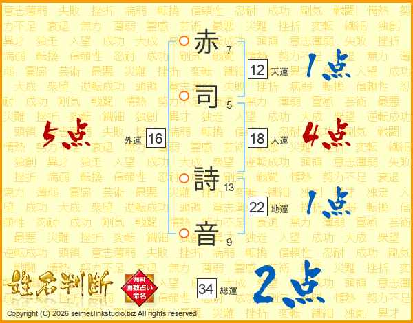 赤(7画)司(5画) 詩(13画)音(9画)
