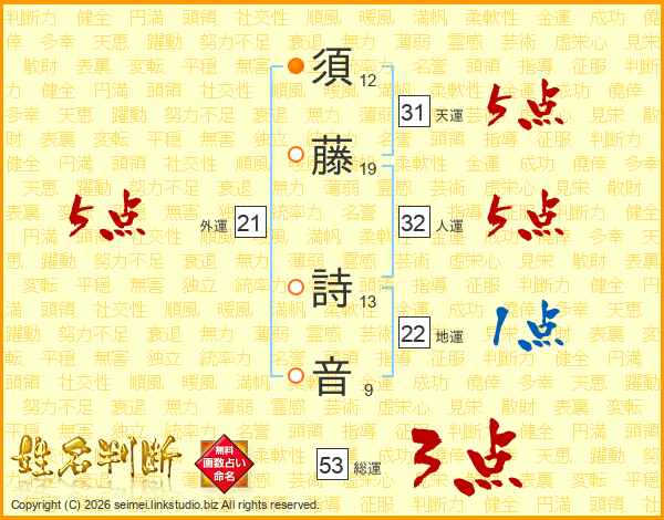 須藤詩音さんの天運は31画の5点!