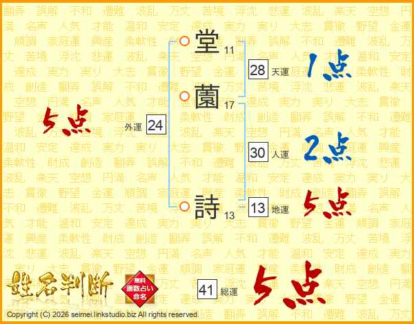 堂(11画)薗(17画) 詩(13画)