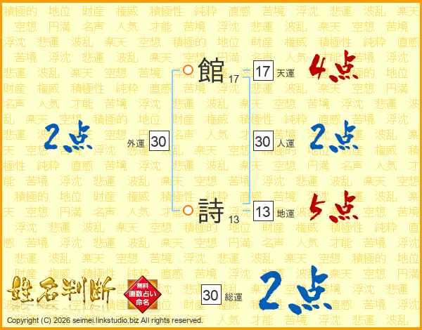 館詩さんの総運は30画の2点!