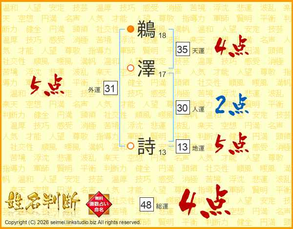 鵜澤詩さんの総運は48画の4点!