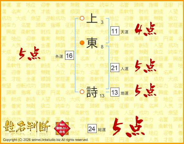 上東詩さんの総運は24画の5点!