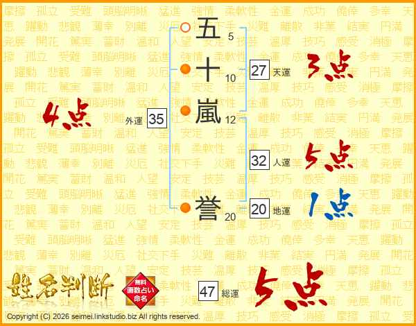 五十嵐誉さんの総運は47画の5点!