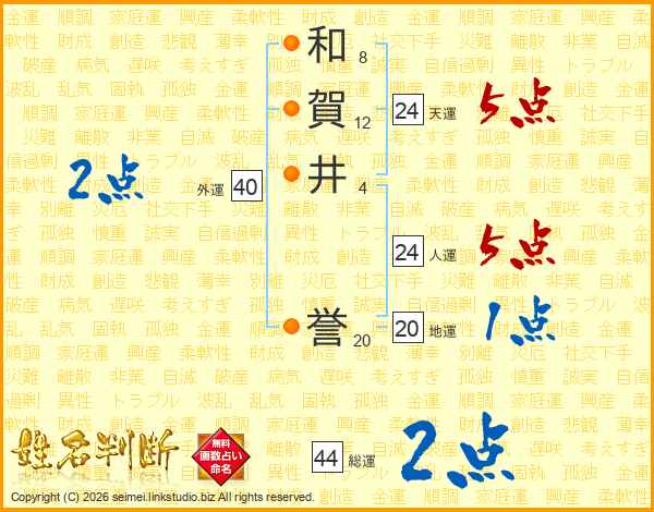 和賀井誉さんの総運は44画の2点!