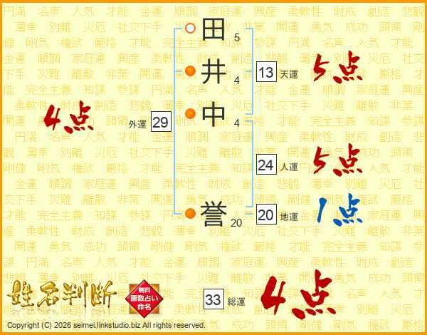 田井中誉さんの総運は33画の4点!