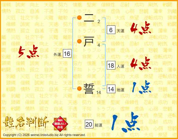 二戸誓さんの総運は20画の1点!