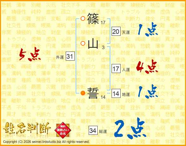 篠山誓さんの総運は34画の2点!