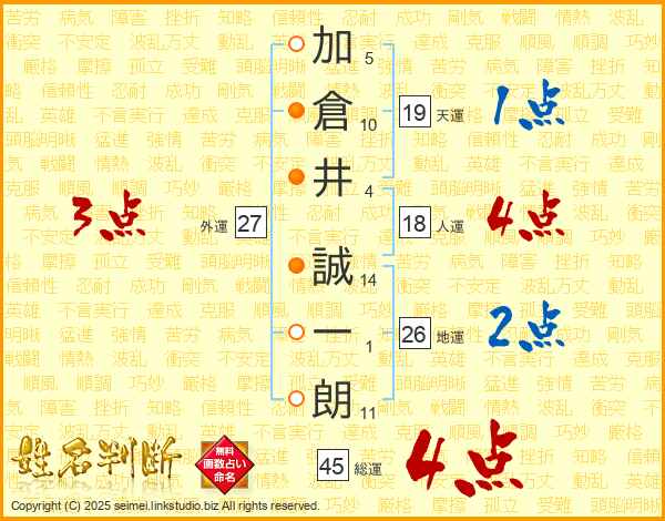 加倉井誠一朗さんの総運は45画の4点!