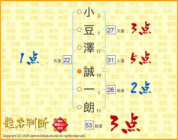 小豆澤誠一朗さんの総運は53画の3点!