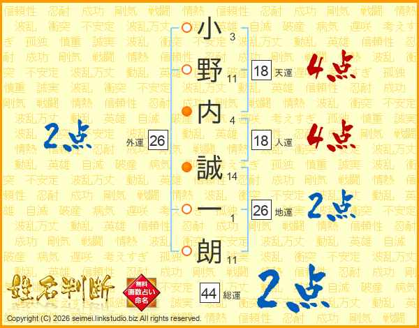 小野内誠一朗さんの総運は44画の2点!