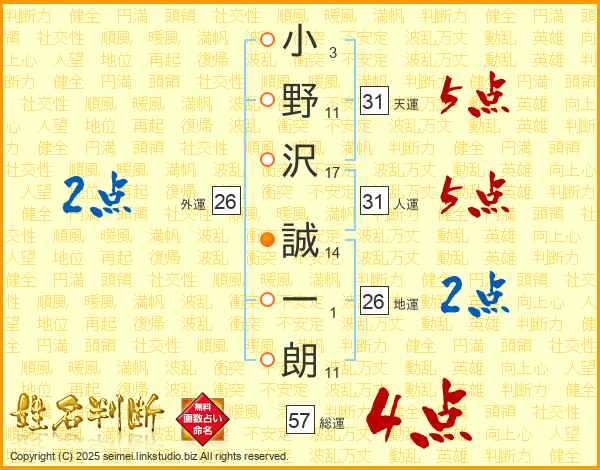 小野沢誠一朗さんの総運は57画の4点!