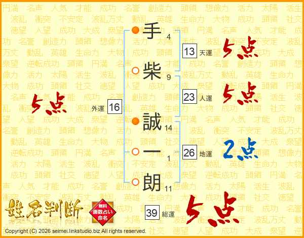 手柴誠一朗さんの総運は39画の5点!