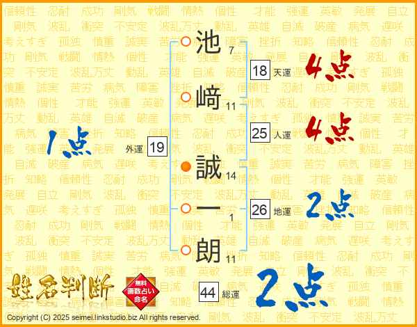 池﨑誠一朗さんの人運は25画の4点!