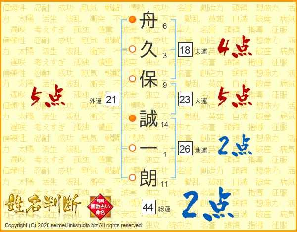 舟久保誠一朗さんの地運は26画の2点!