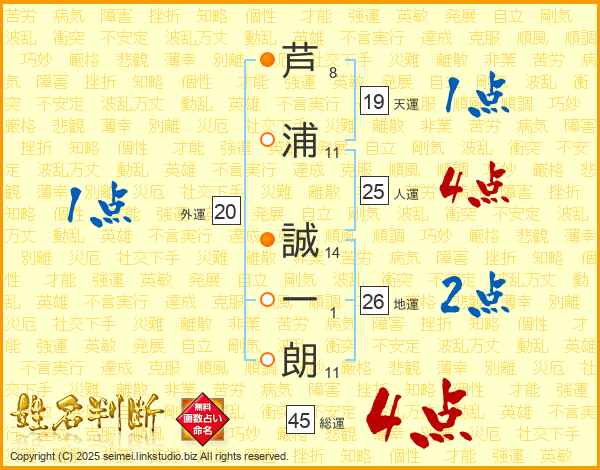 芦浦誠一朗さんの人運は25画の4点!