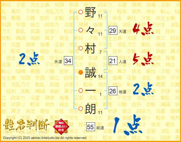 野々村誠一朗さんの人運は21画の5点!