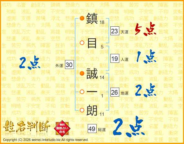 鎮目誠一朗さんの総運は49画の2点!