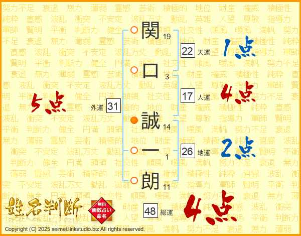 関口誠一朗さんの総運は48画の4点!