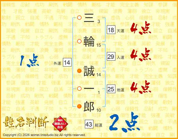 三(3画)輪(15画) 誠(14画)一(1画)郎(10画)
