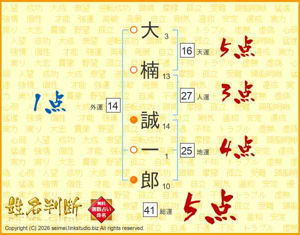大楠誠一郎さんの総運は41画の5点!