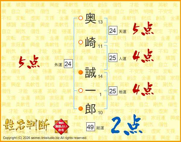 奥崎誠一郎さんの総運は49画の2点!