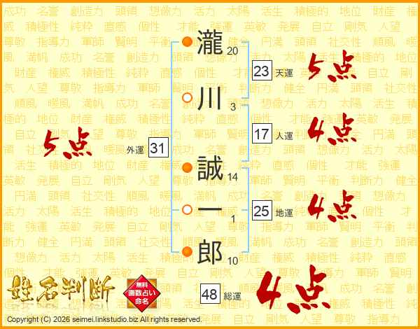 瀧川誠一郎さんの総運は48画の4点!