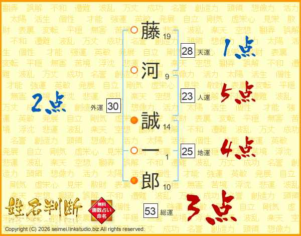 藤河誠一郎さんの人運は23画の5点!