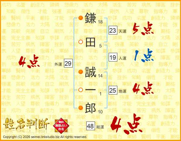鎌田誠一郎さんの総運は48画の4点!