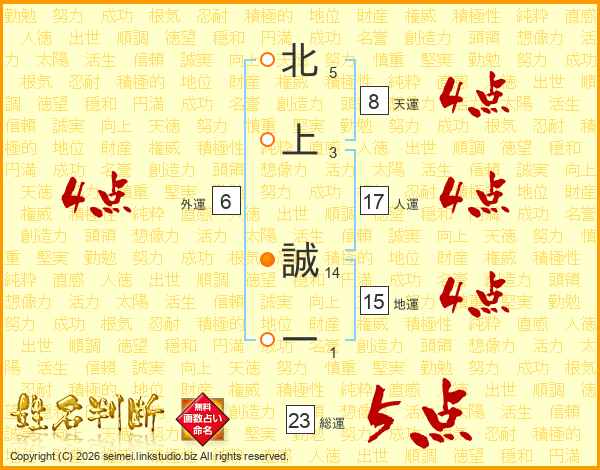 北上誠一さんの総運は23画の5点!