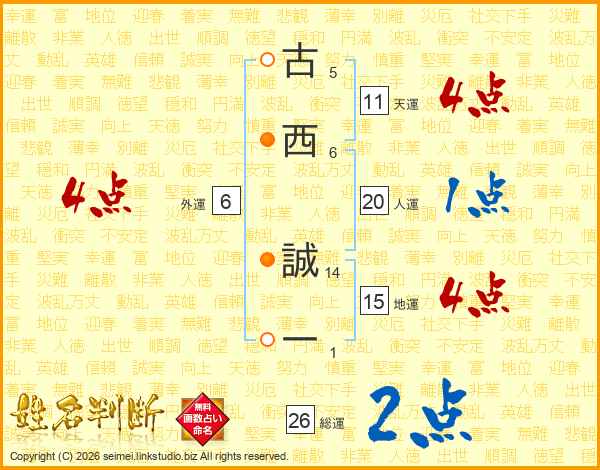 古西誠一さんの天運は11画の4点!