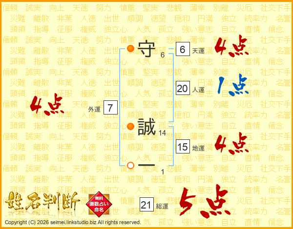 守(6画) 誠(14画)一(1画)