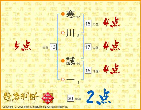 寒川誠一さんの総運は30画の2点!