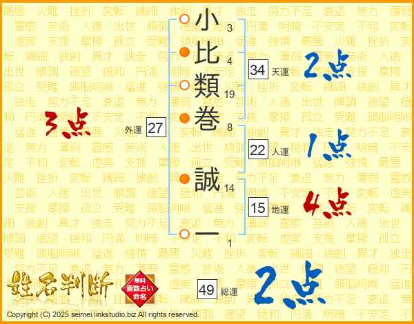小比類巻誠一さんの総運は49画の2点!