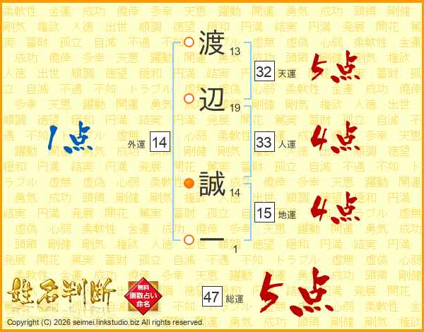 渡辺誠一さんの総運は47画の5点!