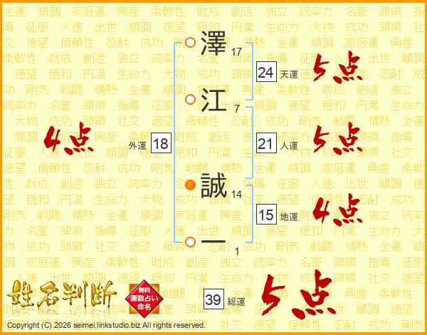 澤江誠一さんの総運は39画の5点!
