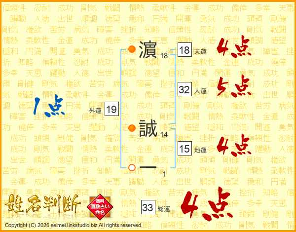濵誠一さんの総運は33画の4点!