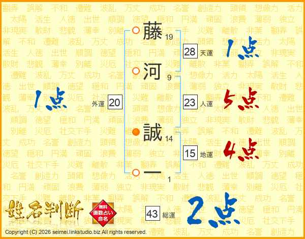 藤河誠一さんの総運は43画の2点!