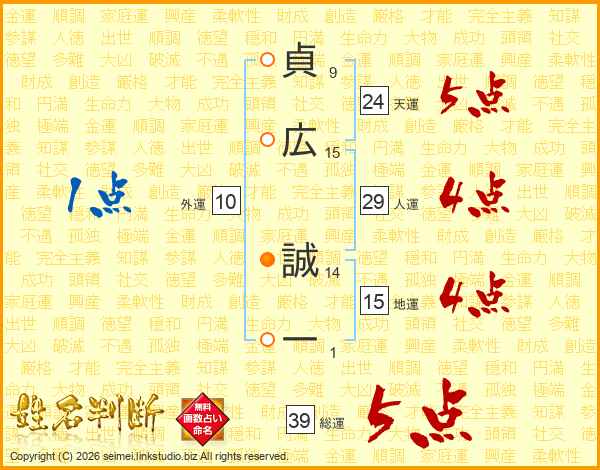 貞広誠一さんの総運は39画の5点!