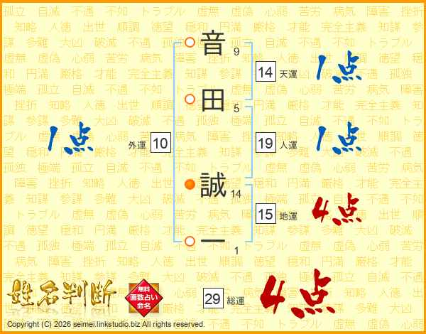 音田誠一さんの総運は29画の4点!
