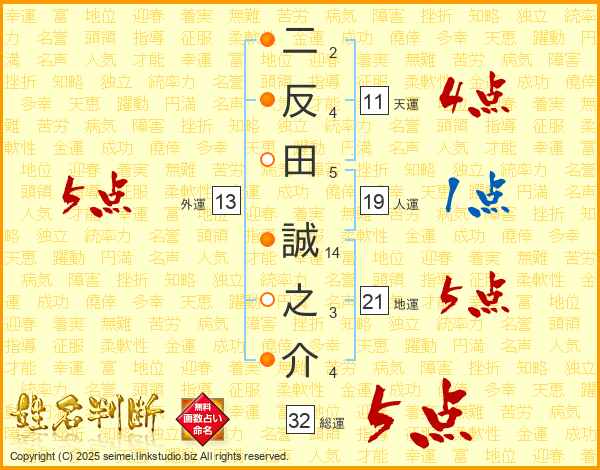 二反田誠之介さんの総運は32画の5点!