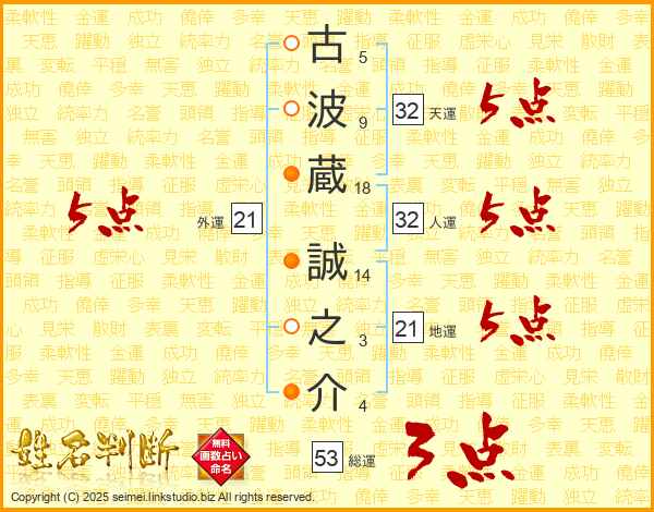 古波蔵誠之介さんの外運は21画の5点!